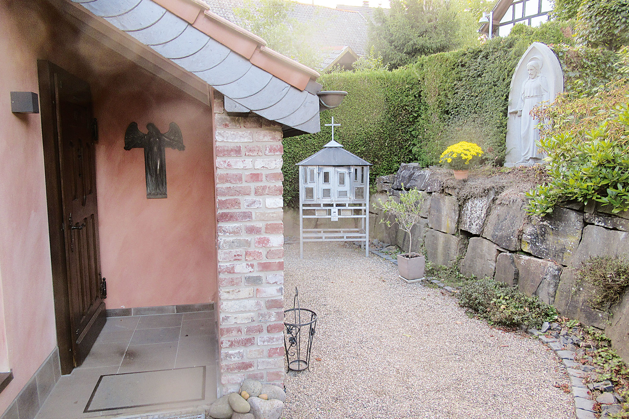 Der Heiligen Rita zum Dank für die Heilung von Krebs bauten wir die Rita Kapelle im Jahre 2016. Sie wurde am 17.07.2016 durch den leitenden Pfr. Tobias Zöller vor über 200 Gläubigen feierlich eingeweiht.